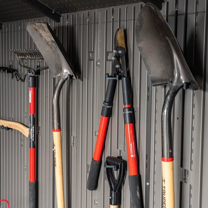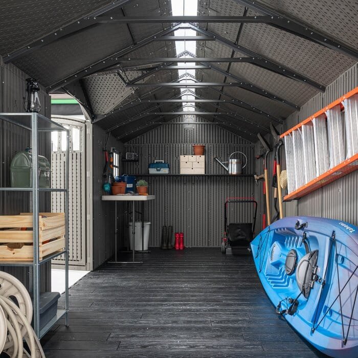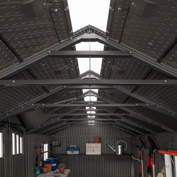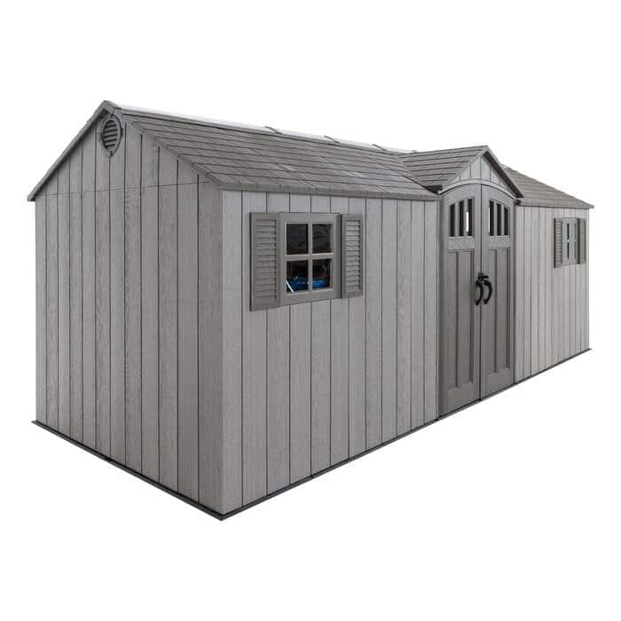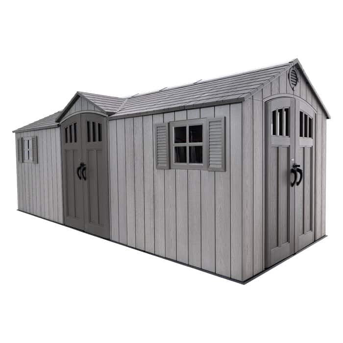 Lifetime’s 20-foot wide sheds are not only built for superior strength and durability, they also have an attractive appearance and design to accent the beauty of your backyard. The convenient, centralized location of the doors allows for easy access to your storage without having to climb over things to reach items stored in the back. The innovative design and durable construction creates the perfect solution for your storage needs.