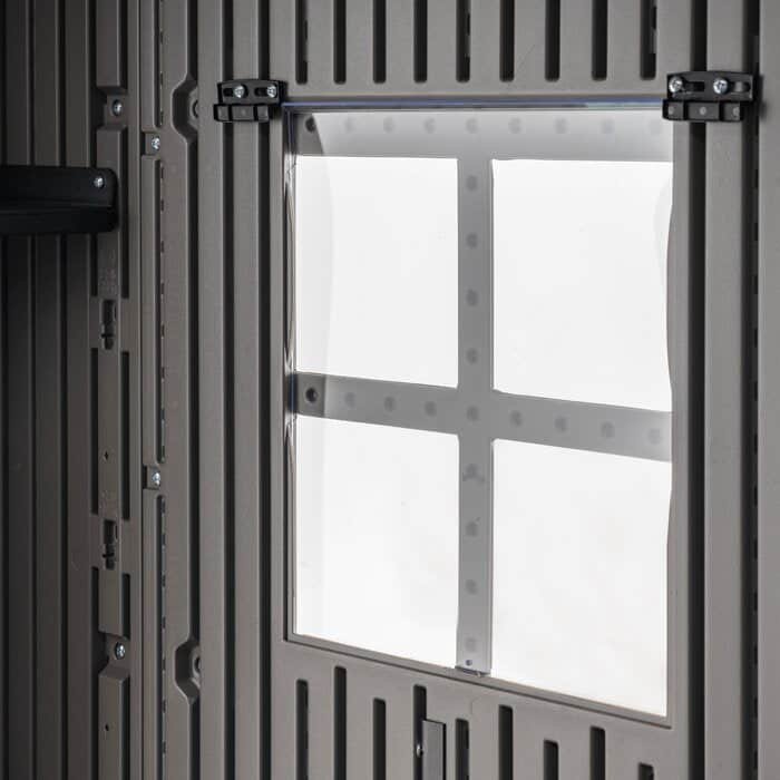 Lockable steel-reinforced doors for added security.