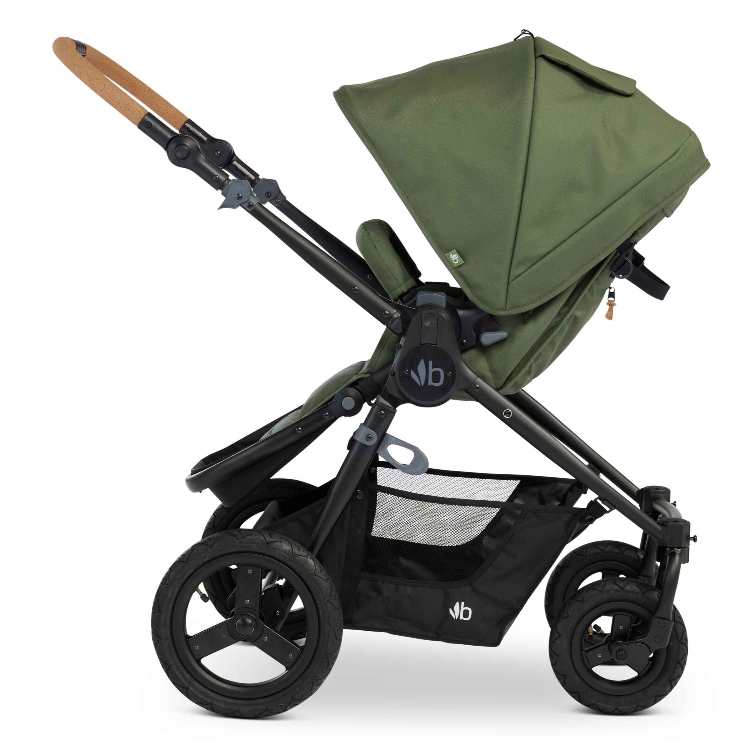 - Air-filled tires with all-wheel suspension allow for smooth strolling over bumpy terrain