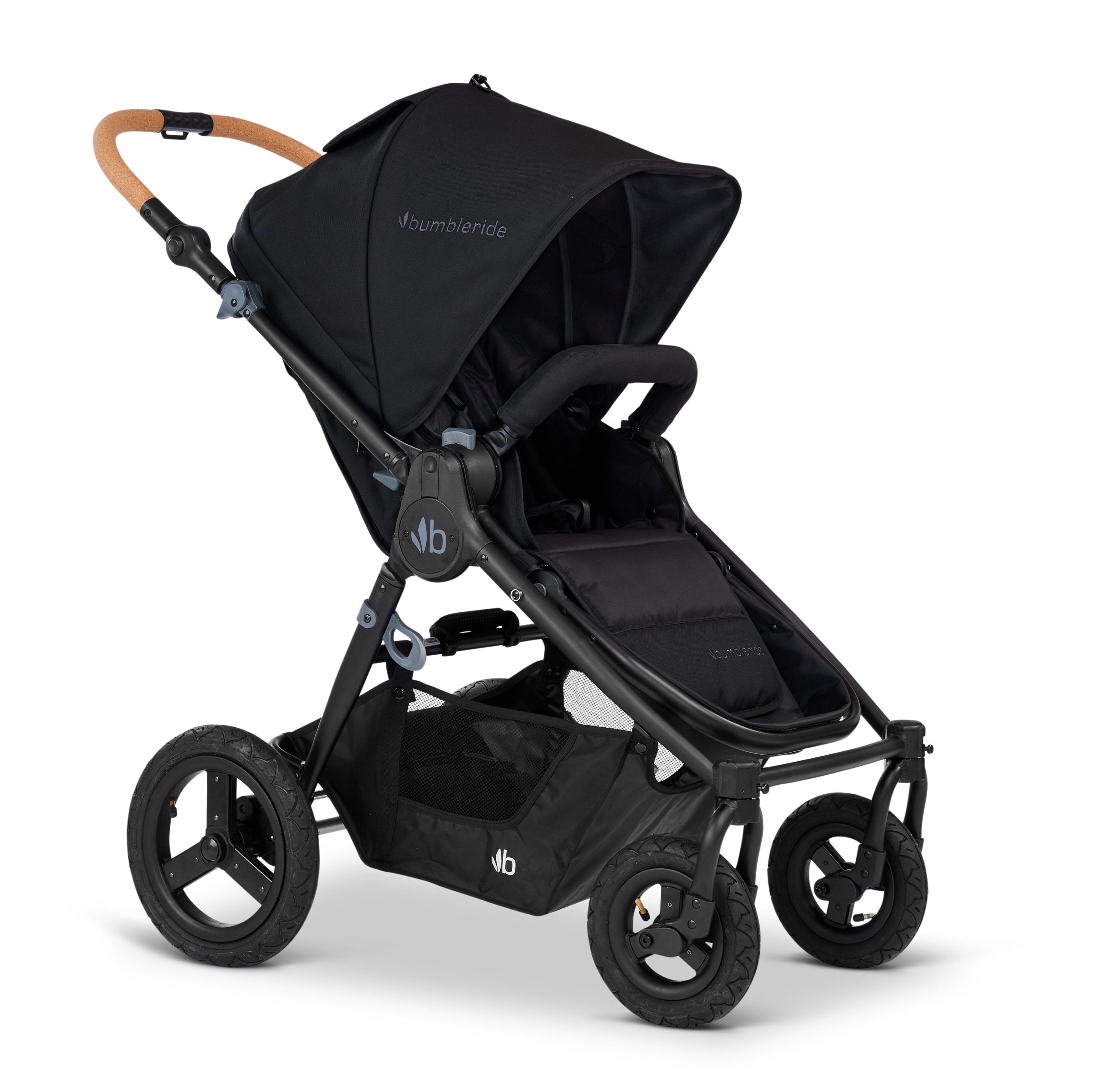 The Bumbleride Era is newborn-ready when you recline the seat to a flat position or pair the stroller with an infant car seat or overnight-approved bassinet. Easy-access pockets and a generous cargo basket store everything you need for the day.