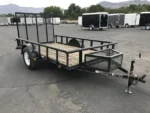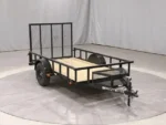 The 5.5×10 Carry-On utility pipe top trailer with a mesh tongue box is meticulously designed to accommodate a wide range of hauling requirements with precision and reliability. Engineered with radial tires and a 2″ ball coupler paired with a 4-way plug type, this trailer ensures steadfast towing security for your equipment or materials. Enhanced with LED clearance and tail lights, visibility on the road is optimized for safer travels, even in adverse conditions. Constructed with treated wood undercoating, this trailer boasts exceptional durability to withstand the rigors of heavy-duty usage and harsh weather elements. Measuring 14′ 0″ in length, 7′ 1″ in width, and 2′ 2″ in height, it provides ample space to transport various cargo types securely. Equipped with a spring axle suspension and no brakes, this trailer delivers consistent performance, backed by a GVWR of 2990 lbs. and an empty weight of 950 lbs., ensuring optimal balance and maneuverability for your hauling needs. Whether you’re transporting equipment, materials, or recreational gear, the 5.5×10 Carry-On utility pipe top trailer with a mesh tongue box offers a reliable and versatile solution for every task. 2025 model year. Trailer: 003872