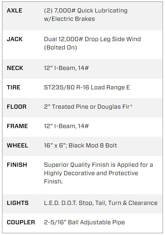 The 14GN from Big Tex Trailers is our medium-duty, single-wheel gooseneck. This model combines many of unique Big Tex features-low-profile decks, LED lights, treated floor, dual jacks and an adjustable coupler-providing a professional-grade trailer that delivers for an exceptional value.