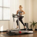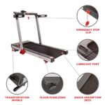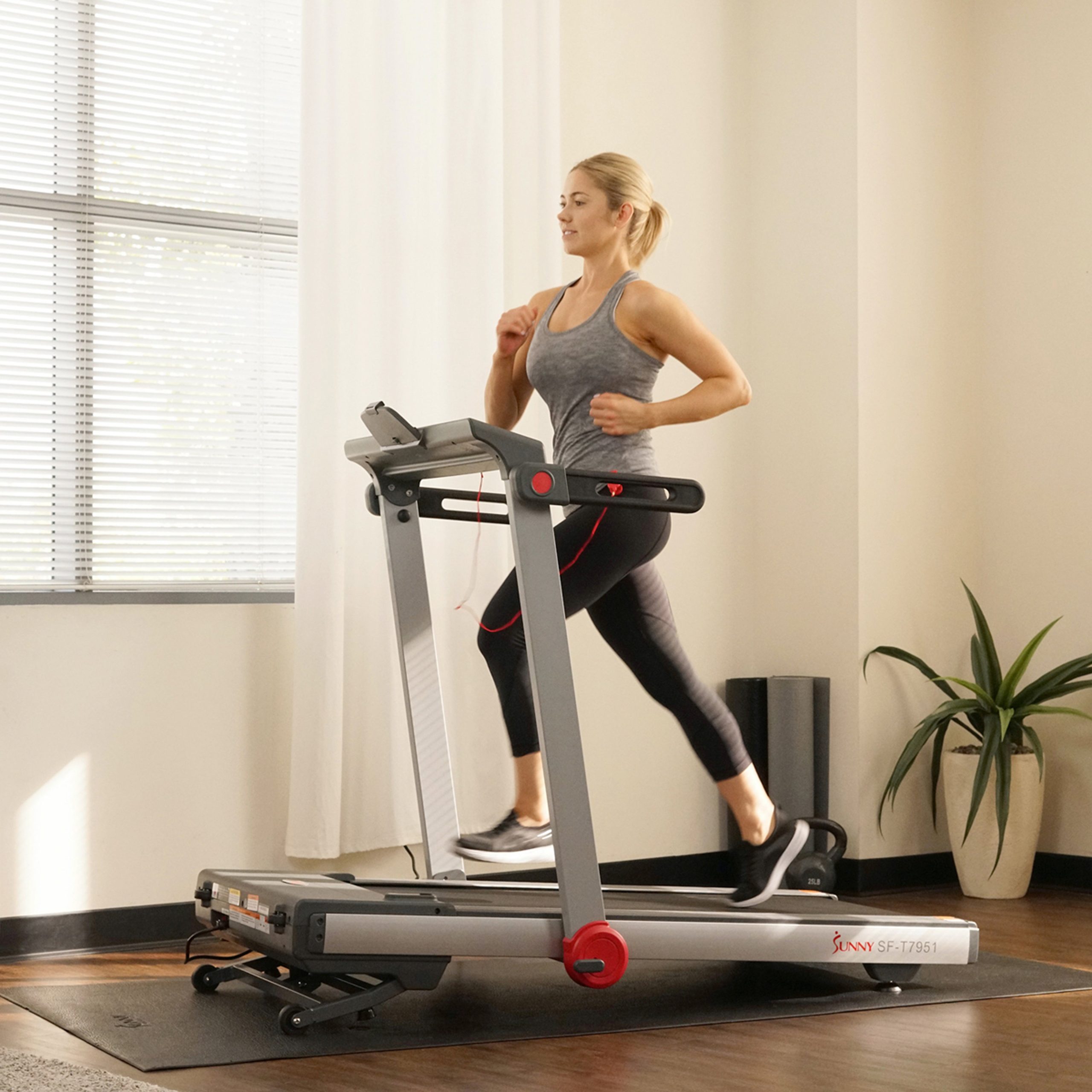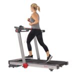 Auto Incline Treadmill by Sunny Health & Fitness almost fully assembled saves space and ready for powerful workouts. 15 levels of auto incline within arm’s reach, this space-saving running deck (50L x 20W in) is equipped with shock absorption technology that reduces impact on your joints when you exercise. Powered indoor treadmill can support up to 265 lb with walking and running speeds between 0.6 – 10 MPH.