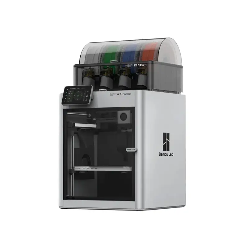 Bambu Lab X1 Carbon, equipped with extra cooling and a hardened nozzle and carburized drive gear, unlocks a wider selection of materials, including PA, PC, PET, and TPU, and specializes in carbon fiber and glass fiber reinforced polymers.