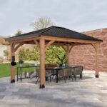 Meet the Barrington Gazebo by Backyard Discovery! Available in a variety of sizes the Barrington is a reliable upgrade to any space as it’s a Pro-Tect® certified structure; certified to withstand up to 6,500 lbs of snow load (or up to 24 inches of snow) and up to 100 mph winds*. The thermal insulated 29 gauge steel roof will reduct heat transfer by up to 20 degrees, making this structure enjoyable in any region for relaxing or entertaining. And if you’re looking to plug in lights, charge your devices or anything else that requires power, Backyard Discovery has you covered with their exclusive PowerPort™. making it convenient with 3 outlets and 3 USB ports. If timeless style combined with superior performance is what you’re looking for in an outdoor gazebo, look no further. Bring the Barrington Gazebo home today!