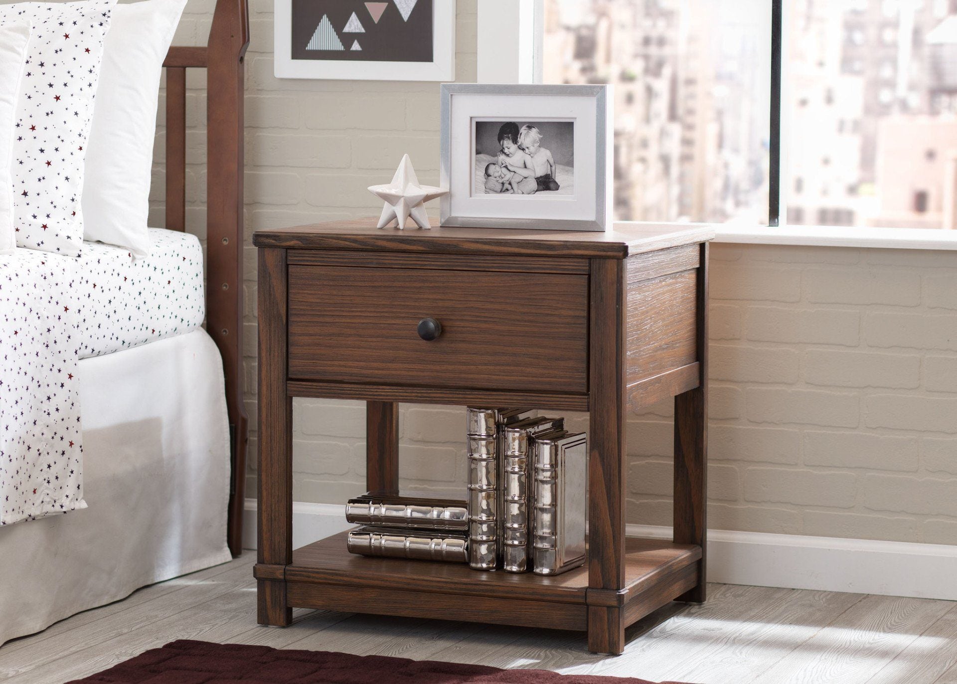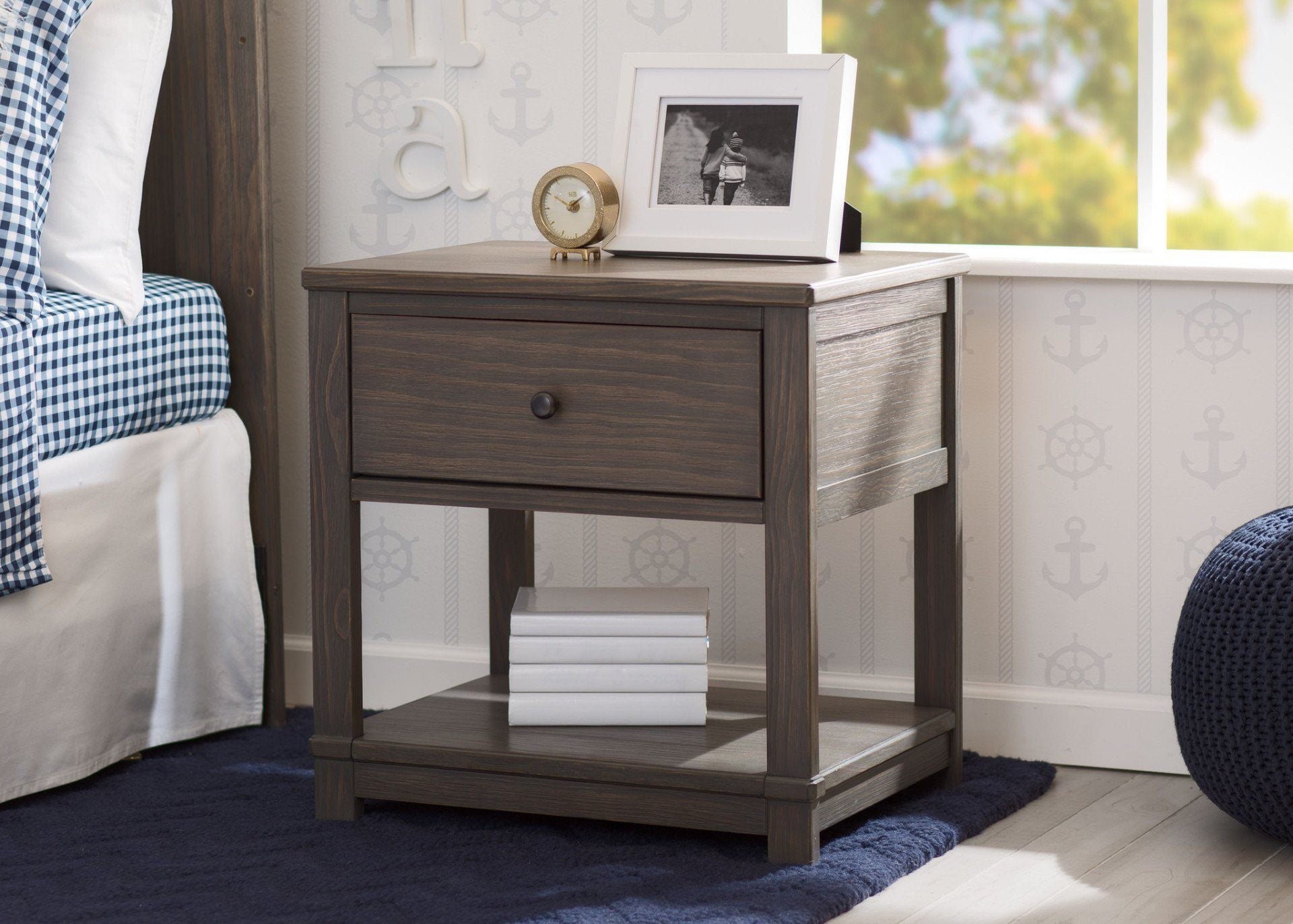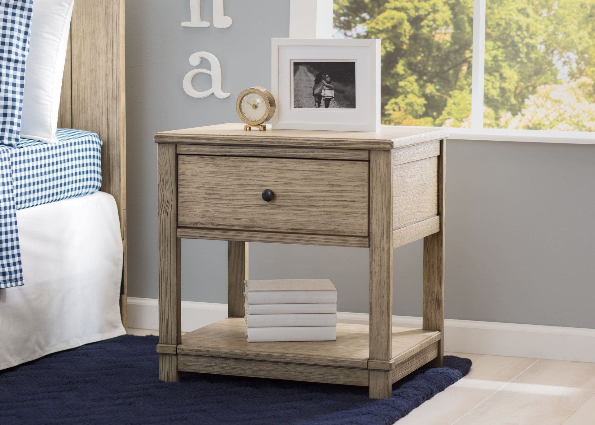 A charming companion to your nursery glider or your child’s bed, the Cali Nightstand from Delta Children is crafted from strong and sturdy wood and features a softly distressed finish for a farmhouse feel. Featuring one drawer and one open shelf, this versatile nightstand will look great anywhere in your house. To complete the look, this nightstand comes with three different knob choices: choose the matte black for a modern look, oil rubbed bronze for a rustic vibe or the distressed wood that’s an exact match with the rest of the nightstand.