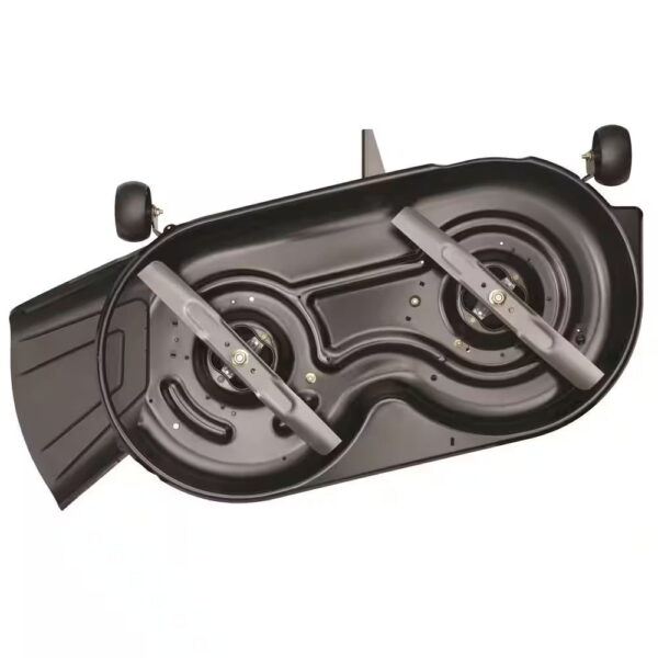 - 42 in. steel cutting deck with smooth arc dual-blades, cut overlap and deep dome deck design provides flawless results, mows a wide area of grass to help reduce cutting time, is rust-resistant and provides your lawn with a clean-cut look