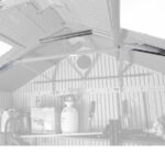 - The high-pitched steep-angle roof allows for quick drainage of rain and snow and provides a spacious walk-around interior