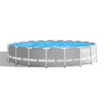 Intex 20′ x 52″ Prism Frame Premium Pool SetFeaturing innovative T-Joints, strong powder coated metal frames and durable 3-ply material liner, our Prism Frame pool offers swimmers a premium pool experience at an affordable price. Beautifully designed, the soft gray exterior and the elegant blue tile print interior provide an upscale look to competent modern backyard décor and furniture. Hydro Aeration Technology is incorporated into the pump for improved circulation and filtration, improved water clarity and increased negative ions at the water surface.