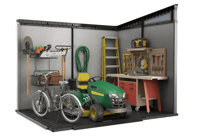 • A perfect blend of modern design and ruggedness, the cleverly architected Artisan 9×7 shed provides the ideal outdoor storage solution for your garden