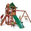 An adventure in sliding and climbing is waiting for your kids with the Five Star II Swing Set by Gorilla Playsets. This set includes fun filled features like an Alpine Wave Slideâ„¢, a Trapeze Swing, and TWO Deluxe Swing Belts. It even includes a Chalkboard for writing fun messages. The semi-enclosed clubhouse includes decorative window inserts and is protected with a tongue and groove wood roof. The wait is over, order yours today!