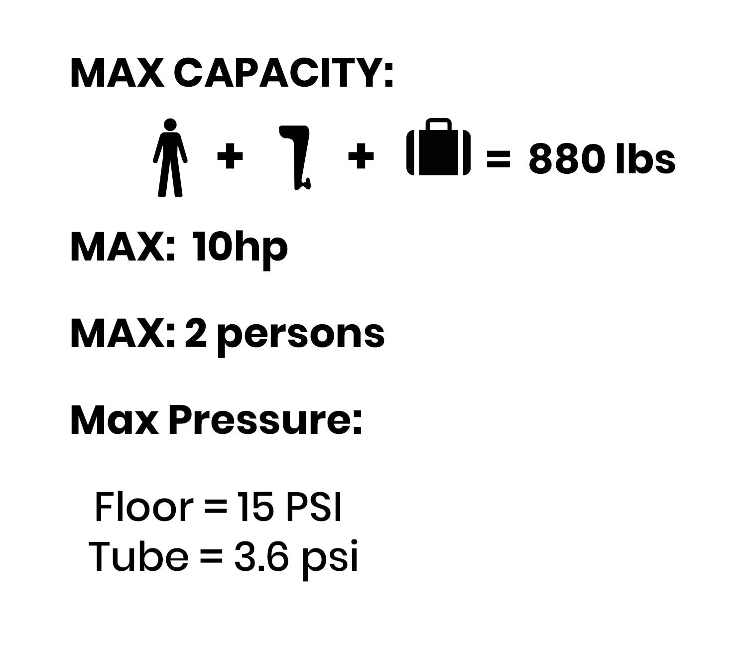 - Max capacity: 880lbs (persons, motor & gear).