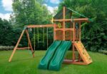 Speed to the finish line with the Outing Wood Swing Set with Vinyl Canopy and Yellow Dual Slides by Gorilla Playsets. This charming playset includes two side-by-side yellow Alpine Wave Slides so kids can compete in friendly races. The Outing Swing Set also features two extreme-duty swing belts, a trapeze bar assembly, a built-in sandbox area, and so much more. The Green Deluxe Vinyl Canopy protects the play deck from the elements and provides a shady spot on sunny days. This swing set includes all required hardware, all lumber, and a step-by-step instruction manual to reduce assembly time. The lumber comes pre-sanded, pre-cut, and pre-stained at the factory. Even the main beams come pre-drilled to cut back on building time. Gorilla Playsets’ cedar lumber naturally resists rot, decay, and insect damage. We recommend using a sealant, like our Playground Sealant, within the first 90 days to keep your swing set looking nice and help prolong the life of the play system. Order your Outing Wood Swing Set with Vinyl Canopy and Dual Slides today and race to the finish line!