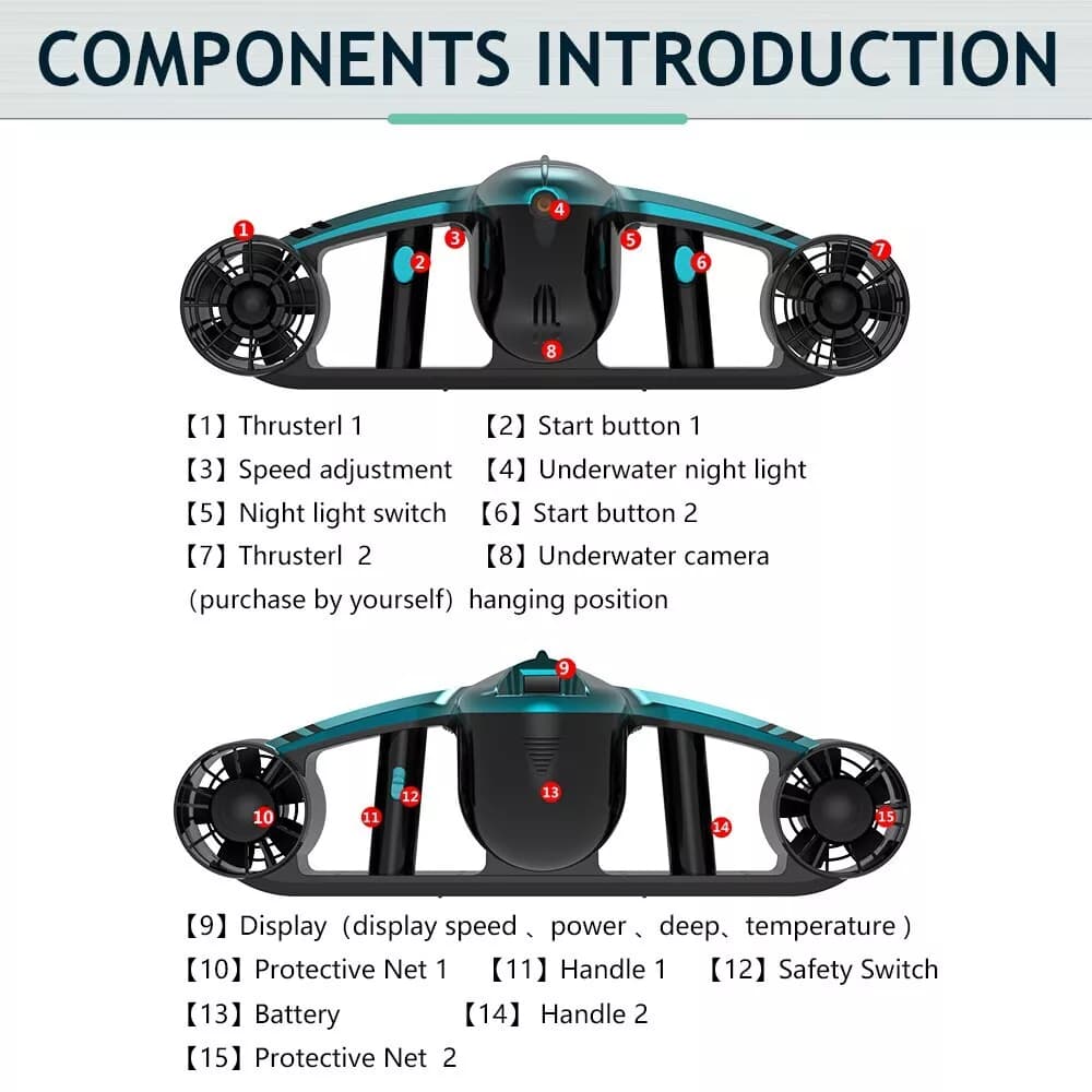 Durable & Waterproof Build: Built to withstand harsh underwater conditions, the Seakundi F1 Pro is constructed from premium materials designed for durability and waterproof performance. Dive with confidence, knowing that your scooter can handle the rigors of any aquatic environment.