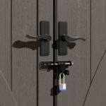 • Upper and lower metal latches keep doors closed and in place