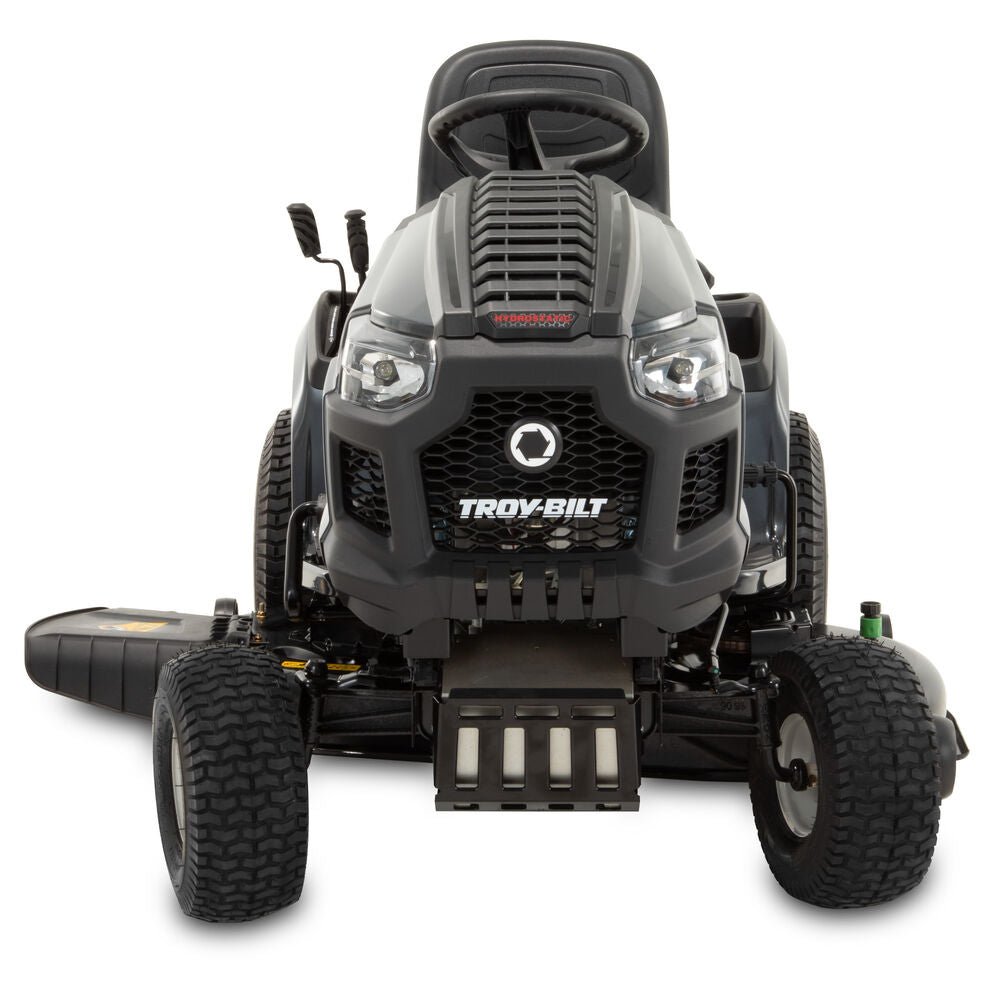 Tackle mowing tasks and other yard work jobs easily with the Troy-Bilt® Super Bronco™ 46K XP riding mower. A large Step-Thru™ frame is designed for easy on-and-off access and includes a rear hitch for quick attachment of tow-behind accessories, like dump carts, spreaders, or aerators (attachments sold separately). Hydrostatic transmission with cruise control is designed for a smooth change of speed and direction, while the adjustable, high-back seat helps provide comfort. The AGM battery is designed to provide reliable starting season after season.