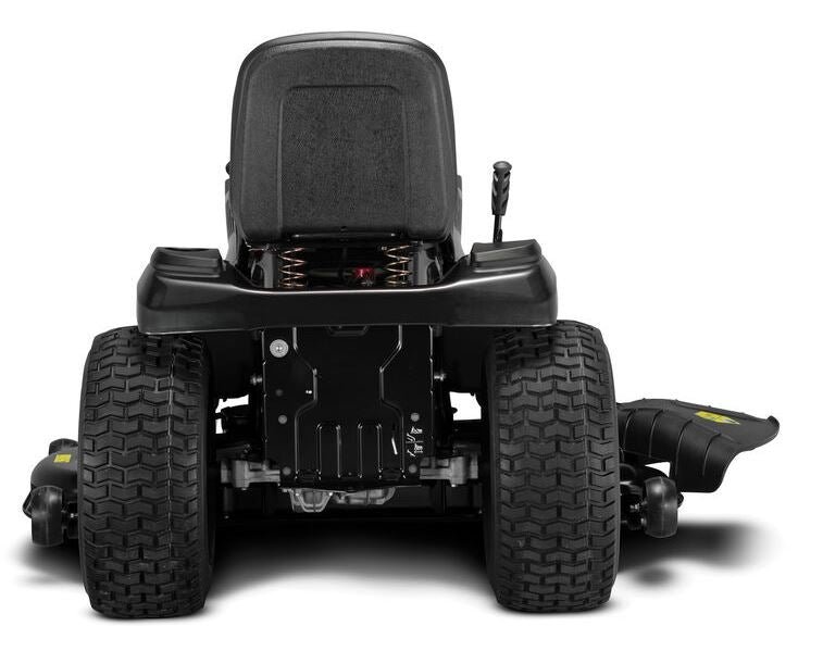 - Hydrostatic transmission has foot-pedal control for a smooth change of speed and direction and includes cruise control to help mow at a constant speed